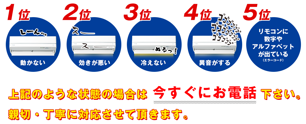 エアコンでお困りのお客様は今すぐにお電話下さい!